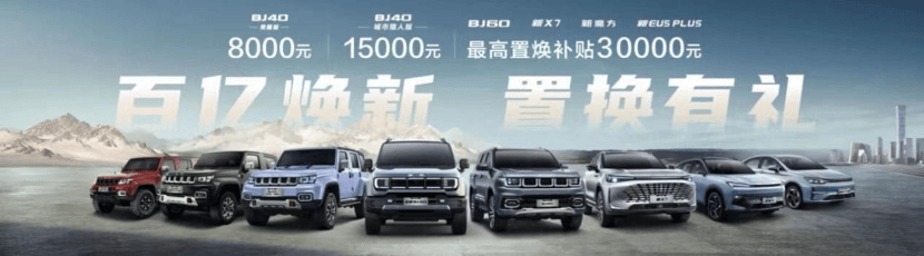BJ40榮耀版、全新BJ40城市獵人版、BJ60等熱門車型,分別推出了除舊車殘值外的至高8000元、至高15000元以及至高3萬元的額外置換補貼,妥妥的真金白銀送給用戶,只為讓更多用戶都能以極低的價格置換到自己滿意的春游新駕。