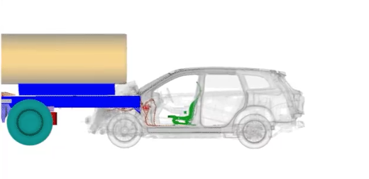從上面的模擬圖片中也能發(fā)現(xiàn),碰撞的地方位于車輛中上部,根本就沒有接觸到電池。所以電池沒有起火。