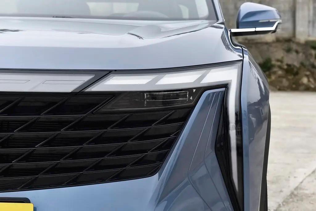 從外觀上來看,2024款吉利博越L依舊是采用了沖擊力極強的前臉造型,它的前臉是配備了大尺寸的熏黑進氣格柵,內部采用的是“V”型排列的設計,LED的貫穿式燈帶兩側是帶有“淚痕”設計,看起來是具有不錯的未來感。它的下包圍采用的是三段式的造型,中間的進氣口尺寸也非常大,整體的辨識度是很高的。