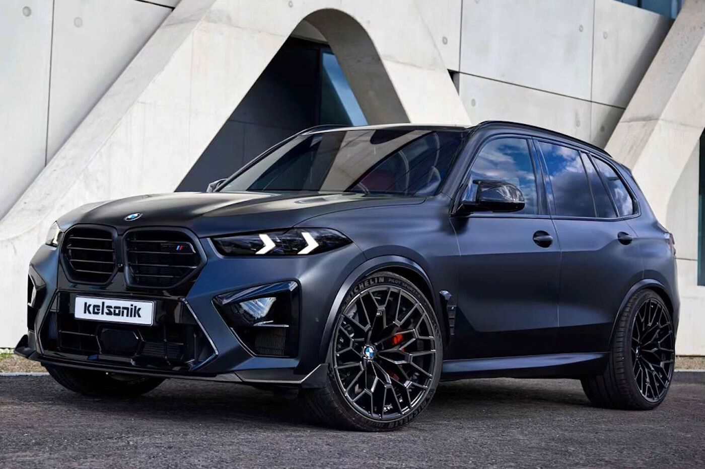 這里所出現的寶馬X5是來自第三方設計師的渲染版本,我們從中見到了更多來自M Performance性能外觀套件的設計。首先能看到的是,車輛完成了進氣格柵的改造,雙腎格柵在外實現了更扁平化的壓縮,并進行了中央黑色飾板鏈接,而內部則布局了成對出現的直瀑式中網。同時,格柵兩端的大燈進行了改造,大燈本身則采用了與新一代寶馬5系共享的樣式。