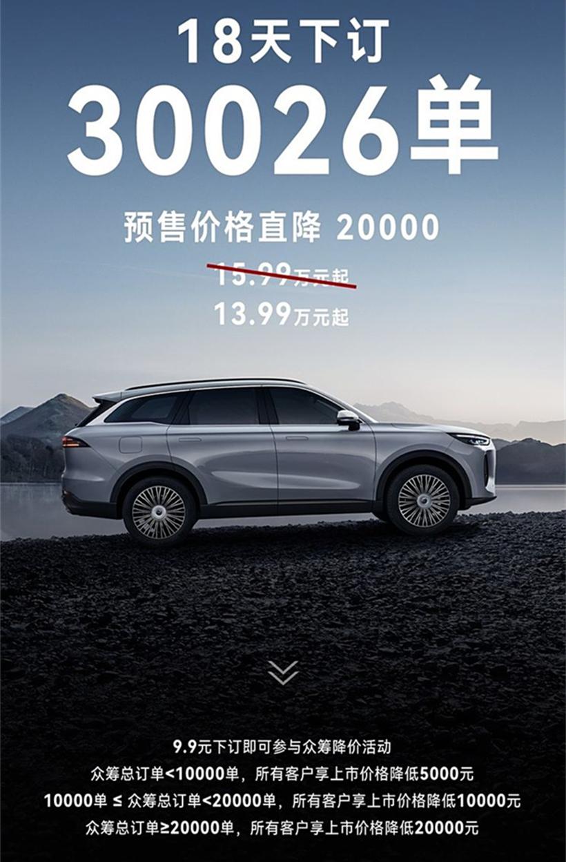 最后要說的是,依照先前預(yù)售時官方開啟的眾籌模式顯示,根據(jù)訂單數(shù)量,新車還將在15.99萬-19.99萬元的預(yù)售區(qū)間基礎(chǔ)上,待到正式上市時將正式售價直降不同金額。而截至目前為止,風(fēng)云T9已經(jīng)達(dá)到30026輛訂單,若超過4萬臺,即可直降2.5萬元,這也預(yù)示著風(fēng)云T9的正式售價,很可能會降至13.49萬起!若果真如此,以其整體表現(xiàn)而言,應(yīng)該還是挺香的吧?