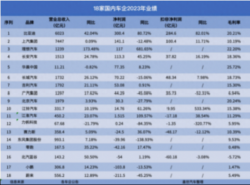 2023年是車企競爭十分激烈的一年,價格戰對車企財務健康的影響到底有多少,我們可以通過策劃期的財務報告進行分析。很多車企雖然普遍實現了營收的增長,但也有不少車企陷入了收入增加而利潤未增的困境。