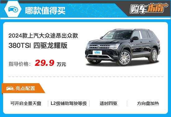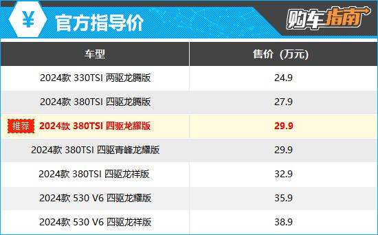 所以綜合來看,在2024款上汽大眾途昂出眾款提供的7款車型中,29.9萬元的380TSI 四驅龍耀版性價比最高,消費者在選擇時可以優先考慮。