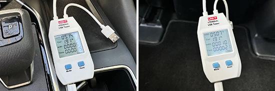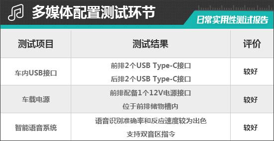 此外,我們對USB接口的電壓與電流進行了測試,其中前/后排USB Type-C接口的電壓和電流大致相同,分別可達5V和1.9A左右,整車的充電效率表現較為出色。