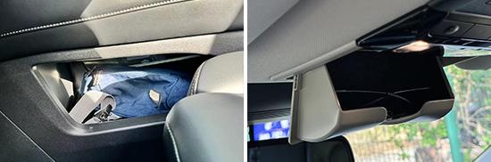 經過實測,上述固定物品均能找到合適的位置擺放。綜合來看,評測車的車內儲物空間數量較多,且容積可觀。如中央通道下方采用了掏空處理,天窗控制區域前方還配備了眼鏡盒,大幅提升了空間利用率。