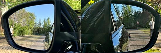 評測車的兩側外后視鏡均為普通鏡片,未配備雙曲率鏡片。實測成績左側外后視鏡為25.2°,在測試過的同級別車型中處于平均水平。而右側外后視鏡為17.2°,在測試過的同級別車型中處于中下游水平。