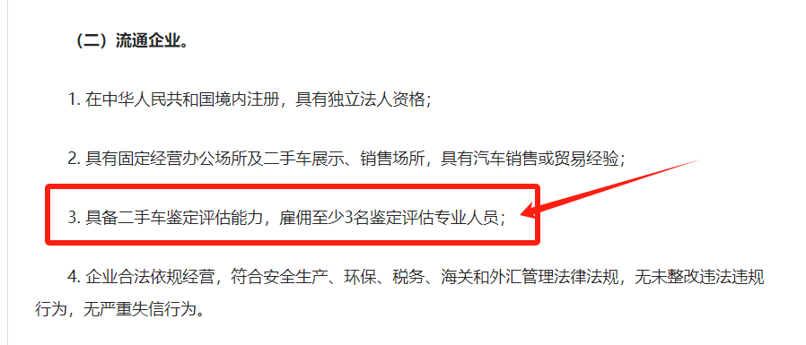 是機遇,也有挑戰,面對風口,行業從業者肯定都想施展拳腳大干一番,但打鐵還得自身硬,二手車本身屬于非標品,也是講究質量好壞的,出口經營企業必須具備鑒定車況的能力,國家政策要求,出口經營企業至少雇傭3名鑒定評估專業人員。