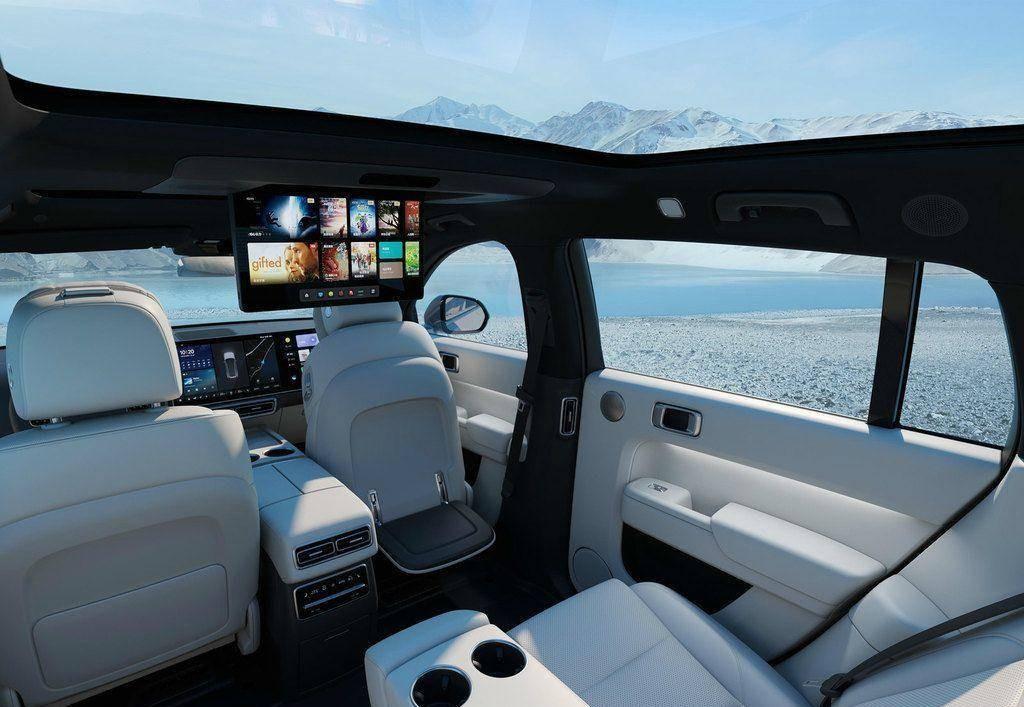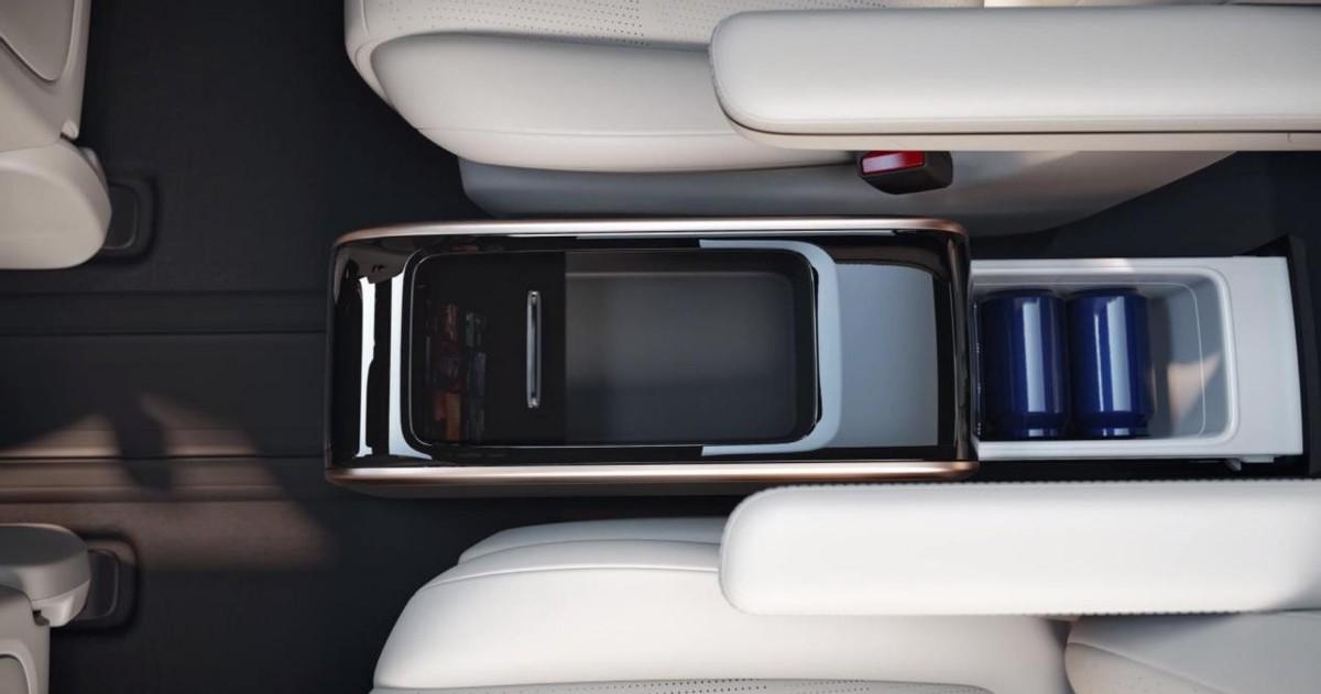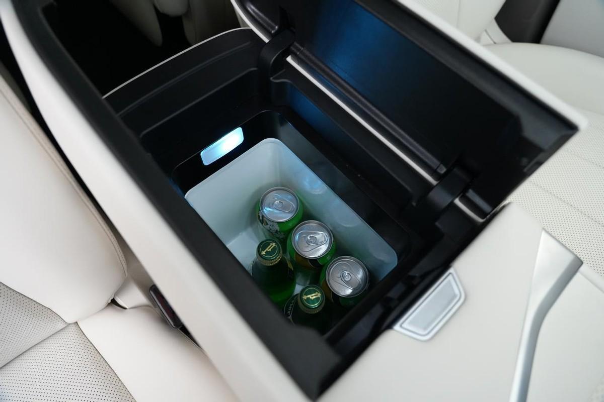 中央扶手處,增加了一個容積高達7L的冷暖冰箱(獨立壓縮機車載冰箱),二排頂部,增加了一個17.4英寸的大彩電。