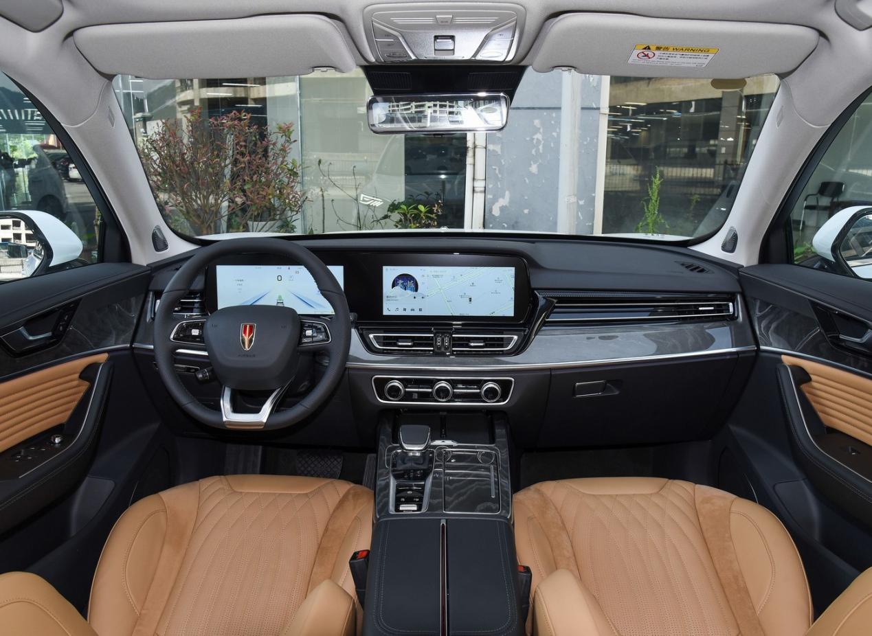 車內,紅旗HS5也并未刻意追求所謂的科技感,而是通過材質用料、功能區布局,來突出它的豪華感。
