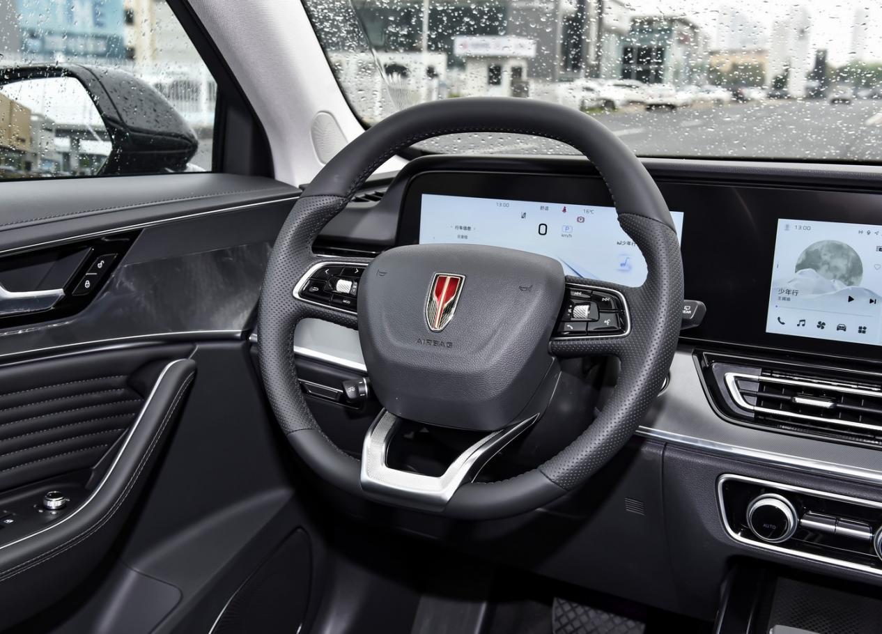 其次是功能應用,紅旗HS5除使用雙12.3英寸連體大屏幕設計來體現智能,它還通過實體按鍵+旋鈕的組合模式,來保障車子的實用性、便利性。驚艷算不上,但細細品味,會覺得它很有豪華范。