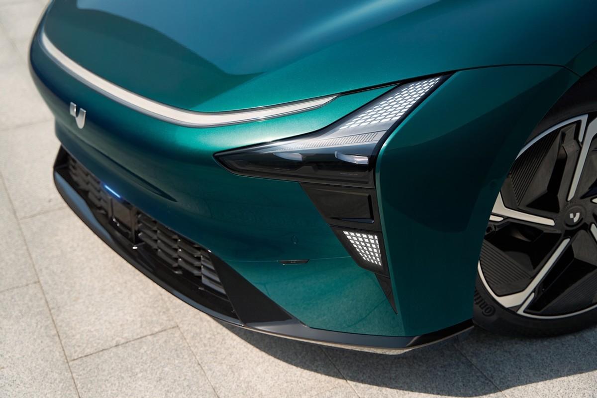 雖然也是7字輩,但在外觀部分,極越07的的辨識度還是很高的。前臉采用新能源車最為常見的封閉式設(shè)計,兩側(cè)Y字型前大燈的造型極具辨識度,中間還有一條U型燈帶,形成貫穿式的風格。