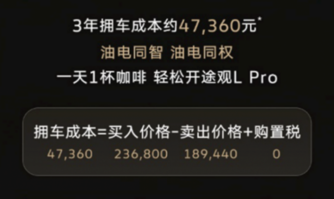 同時,本次發布會上還提出了擁車成本的概念。買車絕不是一錘子買賣,途觀L PRO三年擁車成本僅需47360元起,用直觀的方式向消費者展示燃油車的用車成本。雖然電動車平時充電的成本低,但不要忘了賣車時候極高的貶值率。