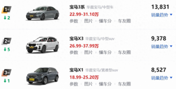 其中3系貢獻13831輛,也是品牌僅有一款破萬車型,它的純電版i3則銷售5810輛,連續(xù)三個月保持環(huán)比正增長趨勢;寶馬X3銷售9378輛,X1銷售8527輛,兩款SUV也實現(xiàn)了環(huán)比正增長。