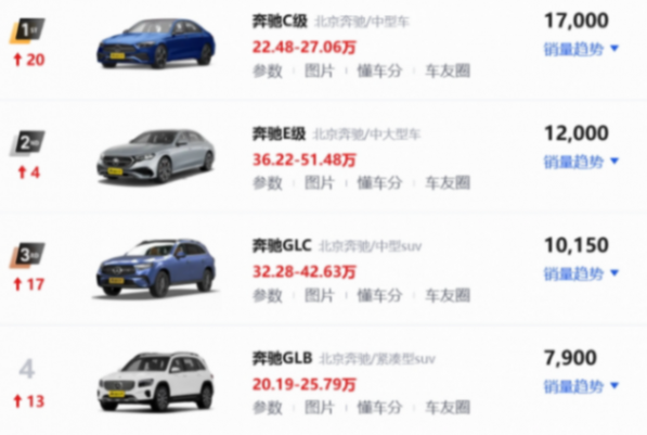 其中奔馳C級、E級、GLC均突破萬輛,分別銷售17000輛、12000輛和10150輛,C級環(huán)比增幅接近七成,E級則創(chuàng)下近半年來月銷量新高,這兩款轎車都是憑借顏值守住了市占率,而GLC也走出了4月份的低迷期;GLB銷售7900輛,創(chuàng)下近半年來月銷量新高。