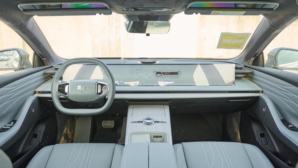 新車的內飾風格非常獨特,可以說是科技感十足,半幅式的方向盤設計可以提供更好的前方視野,巨大的數字駕艙屏功能強大,可顯示的信息非常豐富,并且畫面的3D渲染也做到了同級頂尖,仿佛3A大作一般科幻。此外,新車內飾的做工用料還是非常扎實厚道的,肌膚能夠觸碰到的地方全都采用了皮質包裹,座艙的豪華感還是很強的。