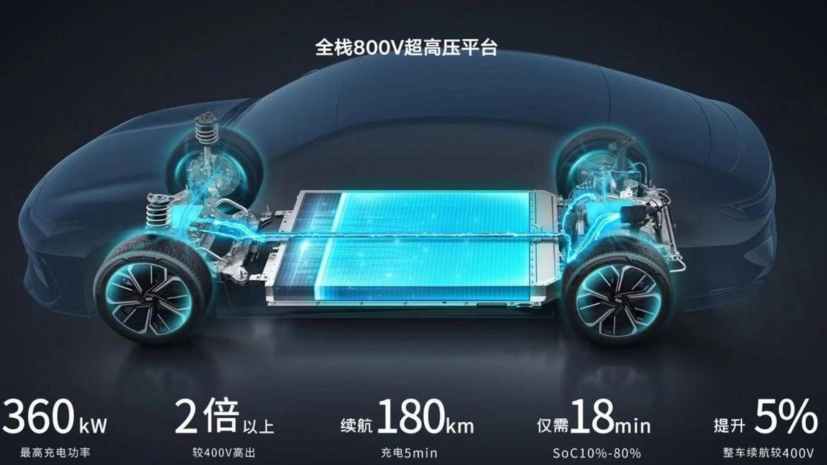 動力方面,新車基于800V高壓平臺打造,四驅車型的電機總功率為475kW,號稱“同級最高”,零百加速僅需3.49秒,這樣的加速表現,對于一款車長在5米左右的純電轎車來說實屬難得。