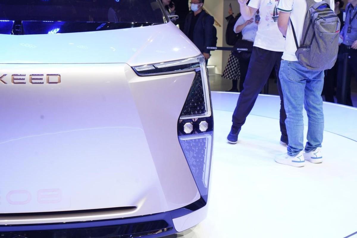 在此前的北京,這臺擁有旗艦級定位的新能源MPV就給我們帶來了不少震撼。一張來自于星紀(jì)元系列的家族式前臉,完成了極為飽滿的封閉處置,在采用主體縱向布局的大燈之間,一塊夸張的面板雕刻著EXEED、E08出現(xiàn),僅僅是在前保險杠及上沿提供了兩段尺寸并不算大的氣孔。