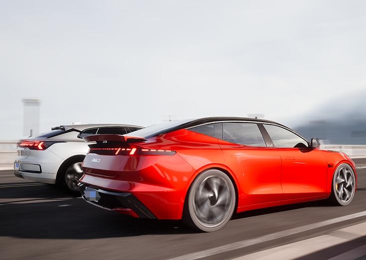 側身造型非常的低趴,車頂線條、車窗區域以及外后視鏡均采用黑化處理,下側裙線條明顯隆起,配備隱藏式門把手和米其林的運動輪胎。尾部配備外擴式尾翼設計,貫穿式尾燈造型與領克07 EM-P類似。據悉,新車車長有望超過5米,車寬2米左右,軸距3米左右。車頂將配備激光雷達,帶來更好的智能駕駛輔助系統。