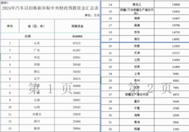 根據(jù)《2024年汽車以舊換新補貼中央財政預撥資金匯總表》中詳細的數(shù)據(jù)可知,補貼資金將會更多流向汽車普及化走在前面的東部地區(qū),這些地區(qū)的居民購置汽車時間較早,其汽車更換報廢的節(jié)點也最為臨近,整個東部地區(qū)所獲得的資金為26.74億元。緊接著就是中部地區(qū),19.73億元,而汽車產(chǎn)業(yè)發(fā)展節(jié)點相對靠后的西部地區(qū)則獲得了17.93億元。