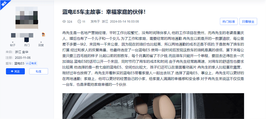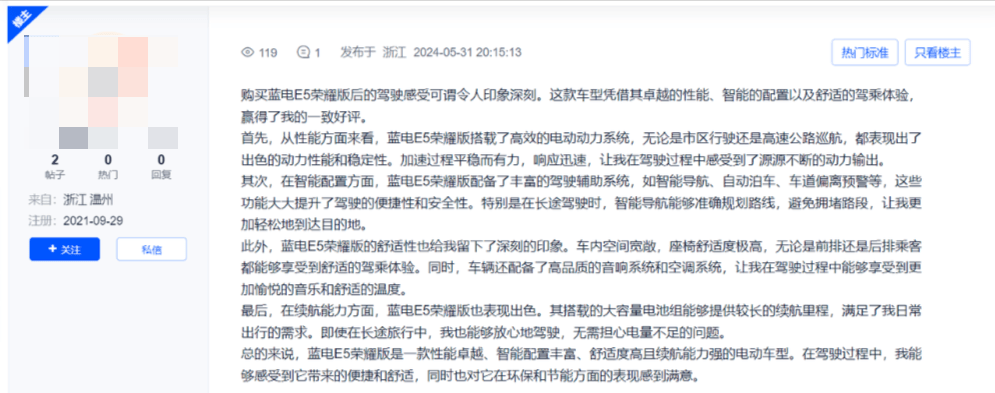 例如,金華某車主表示,他之前駕駛的蒙迪歐每公里成本高達1.2元,而換成藍電E5榮耀版后,每公里成本驟降至三四毛錢,每月節省了大量通勤費用。這樣的經濟賬,對于家庭用車來說無疑是極具吸引力的。