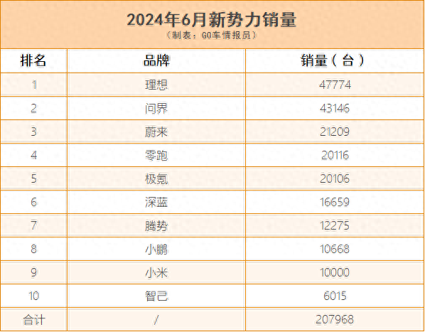 第一名毫無疑問是理想,憑借著L系列的持續熱銷,其6月份拿下47774輛新車的成績,相比上個月有著明顯的提升,這其中理想L6的貢獻不小。問界汽車同樣突破4萬臺,僅僅比理想少了不到10%,新款M7的上市對銷量的貢獻同樣很重要。