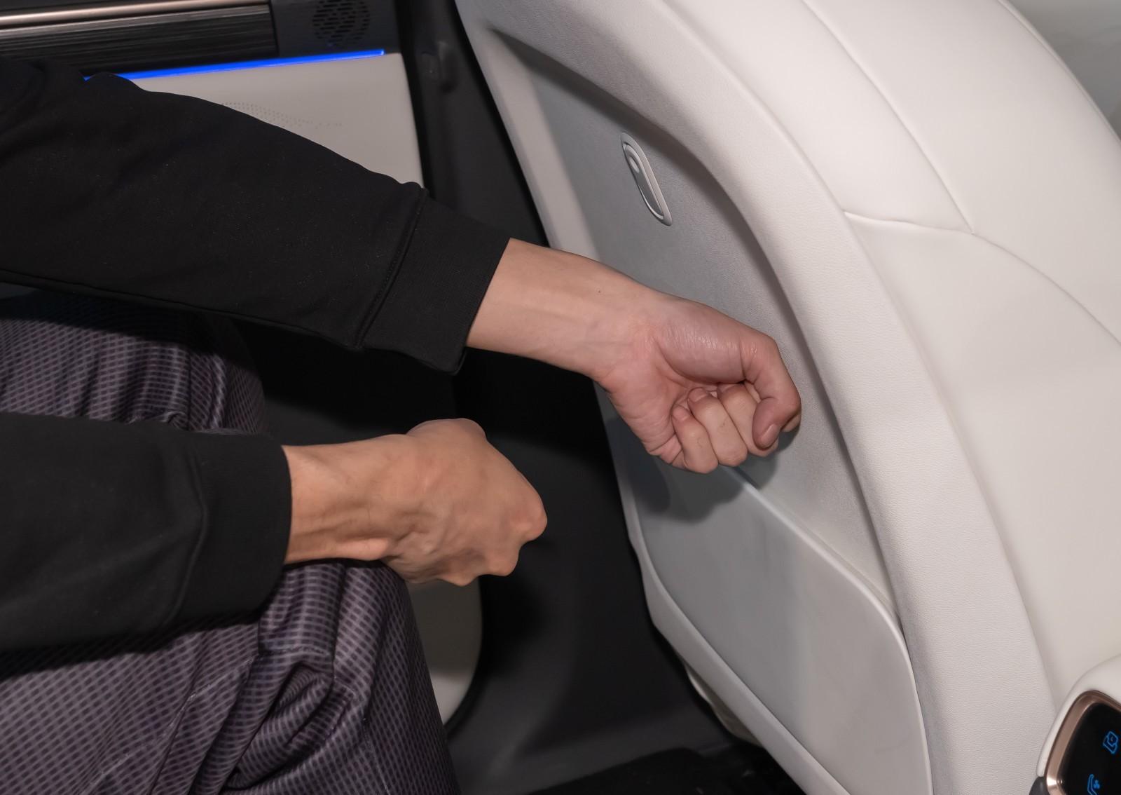 這車的車身尺寸長寬高分別為5002mm/1972mm/1732mm,軸距為3025mm,定位為中大型SUV。乘坐體驗方面,座椅采用2+2+2的六座布局,身高1.72米的體驗者,調(diào)整好前排合適的坐姿后,頭部空間約2拳的余量,表現(xiàn)寬敞。來到第二排坐著,當(dāng)座椅調(diào)整至最靠后時,腿部空間約有3拳的余量;而將座椅調(diào)整至最靠前時,腿部空間也約有2拳的余量,可以輕松翹起二郎腿,同時第二排配備了冰箱,提供了后排獨(dú)立屏幕選配,地板幾乎純平,確保乘坐舒適性。來到第三排坐著,可以獲得約1拳的腿部空間,表現(xiàn)不錯。第三排座椅放倒后的后備廂空間也挺平整的。儲物部分用的也挺順手,能裝而且位置也挺合理的。