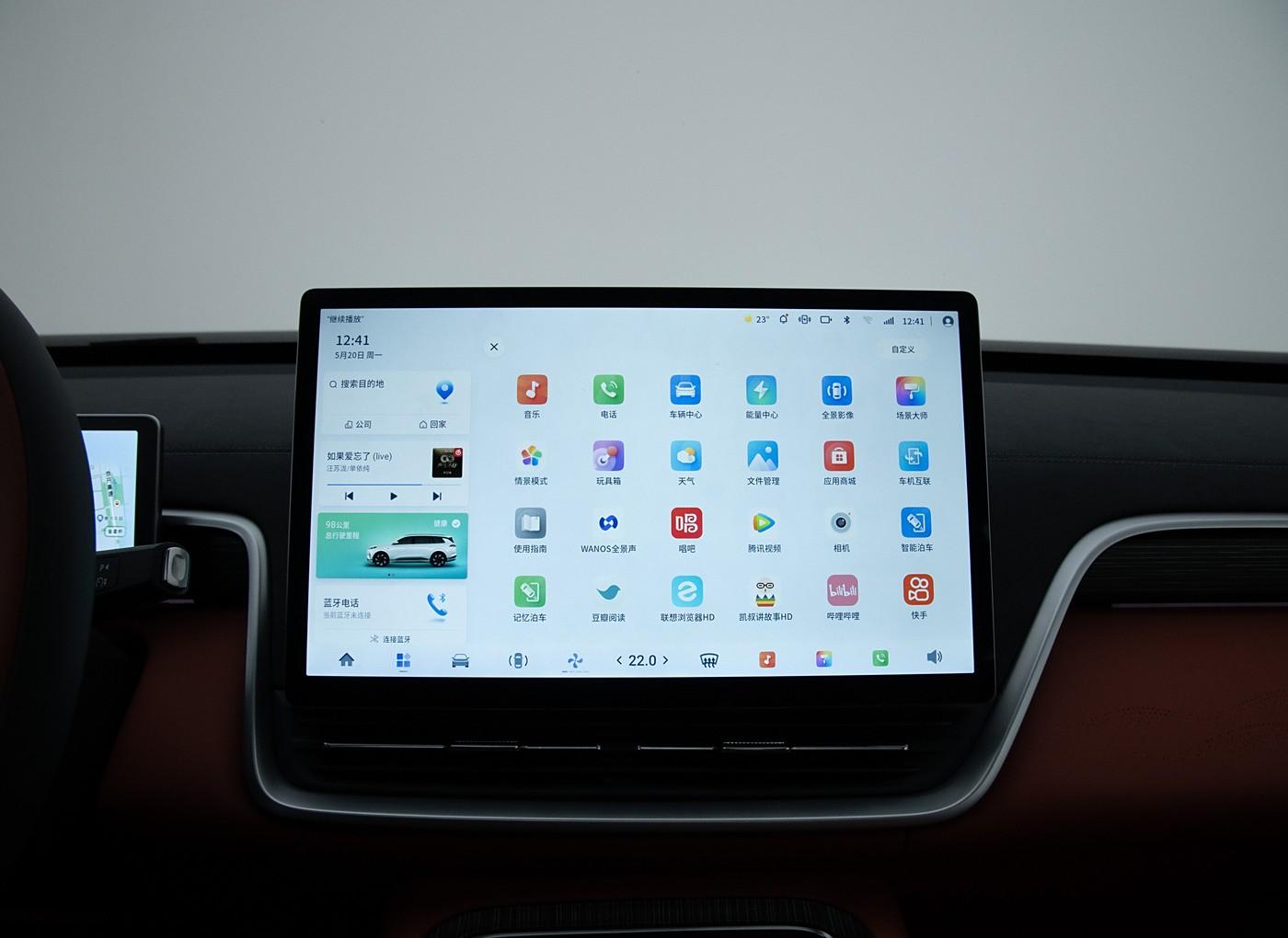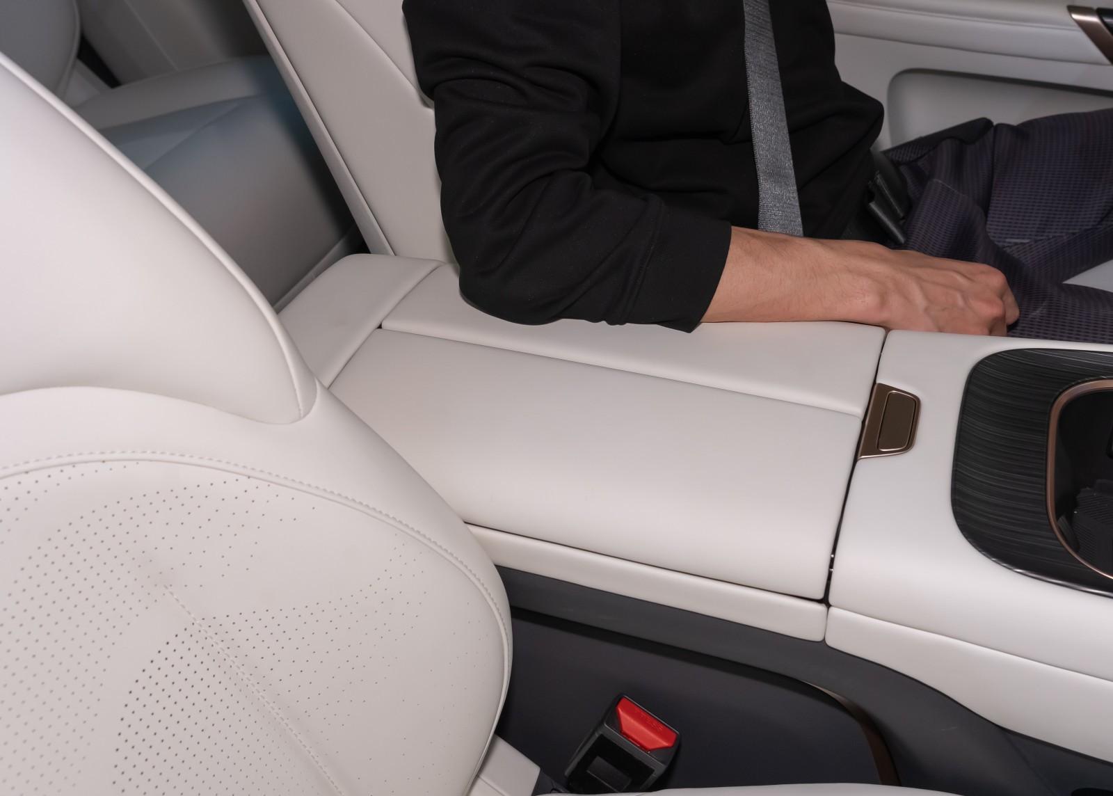 內(nèi)飾方面,屬于比較簡潔、實用的風(fēng)格設(shè)計,中控臺上幾乎沒有物理按鍵,運(yùn)用皮革、仿麂皮、木紋飾板材質(zhì)覆蓋,配合上亮色金屬飾條,看著簡潔、雅致。采用懷擋換擋機(jī)構(gòu),中控屏尺寸為15.6英寸,集成有大部分車輛設(shè)置,地圖、聽歌、視頻、K歌等應(yīng)用,并支持可見即可說語音控制、手勢控制功能等,搭載了高通驍龍8155芯片,響應(yīng)速度迅速,符合當(dāng)前市場主流水準(zhǔn),滿足日常所需。