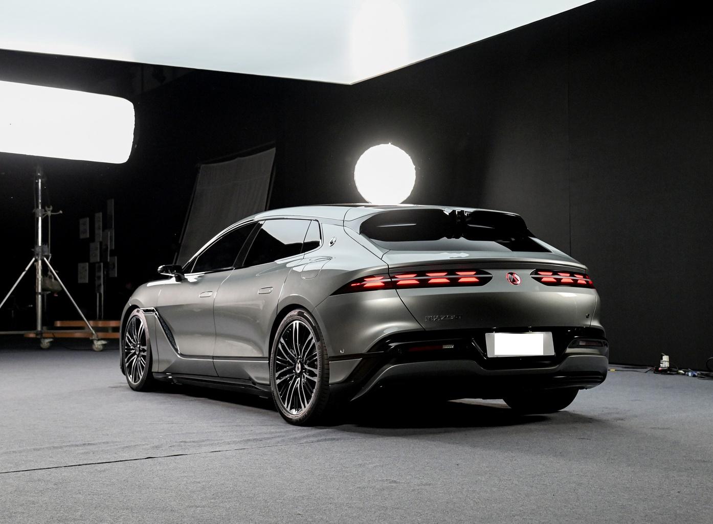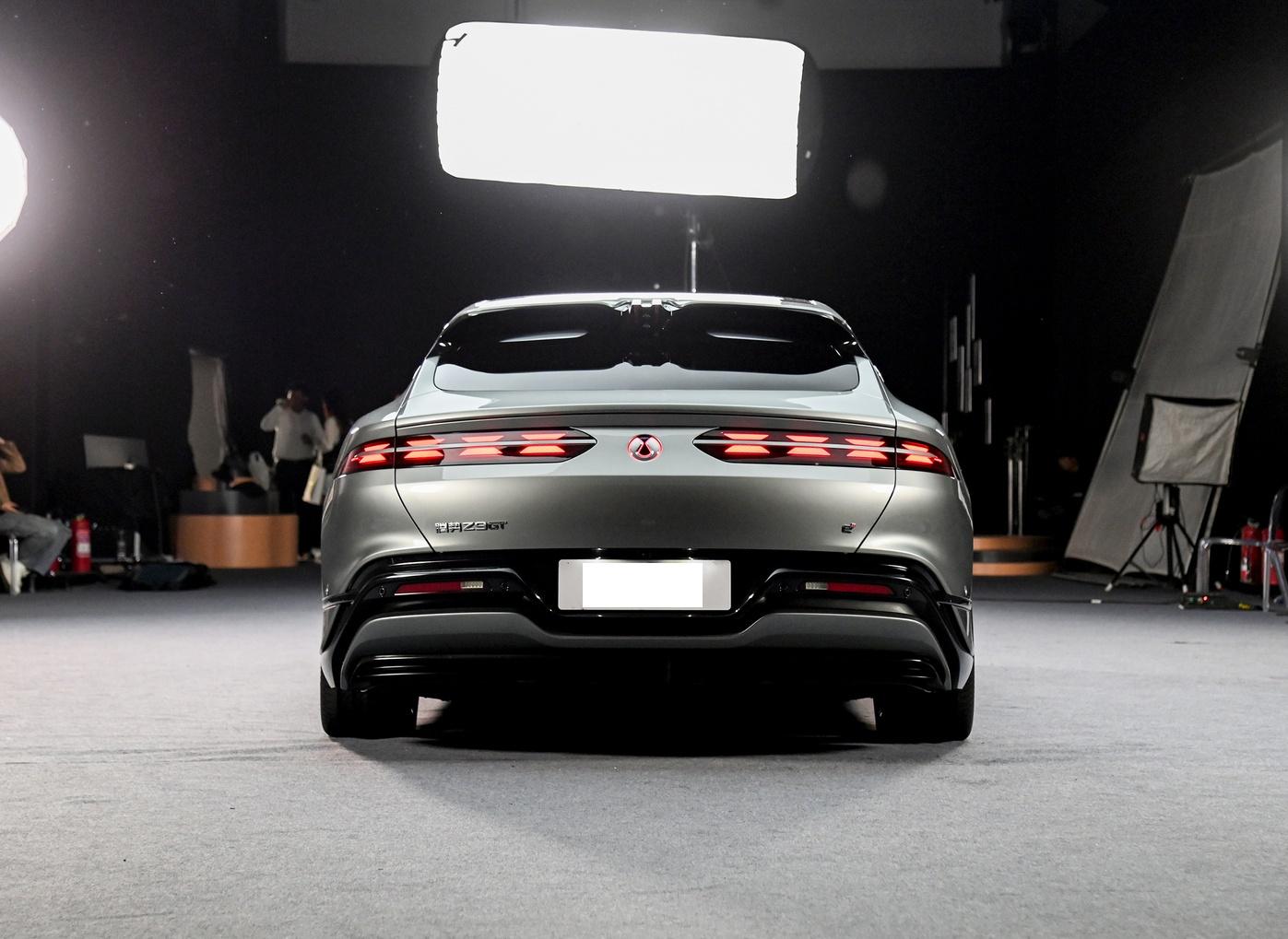 新車的亮點就是將配備主動升降電動尾翼,再配合底部大面積熏黑后包圍處夸張的擴散器造型,繼續強調性能感。而掀背式電動尾門也盡顯GT美感。高位剎車燈的設計為開叉式的燕尾造型,細長的燈帶鑲嵌,中央有著攝像頭鑲嵌,看起來還是很精致的。