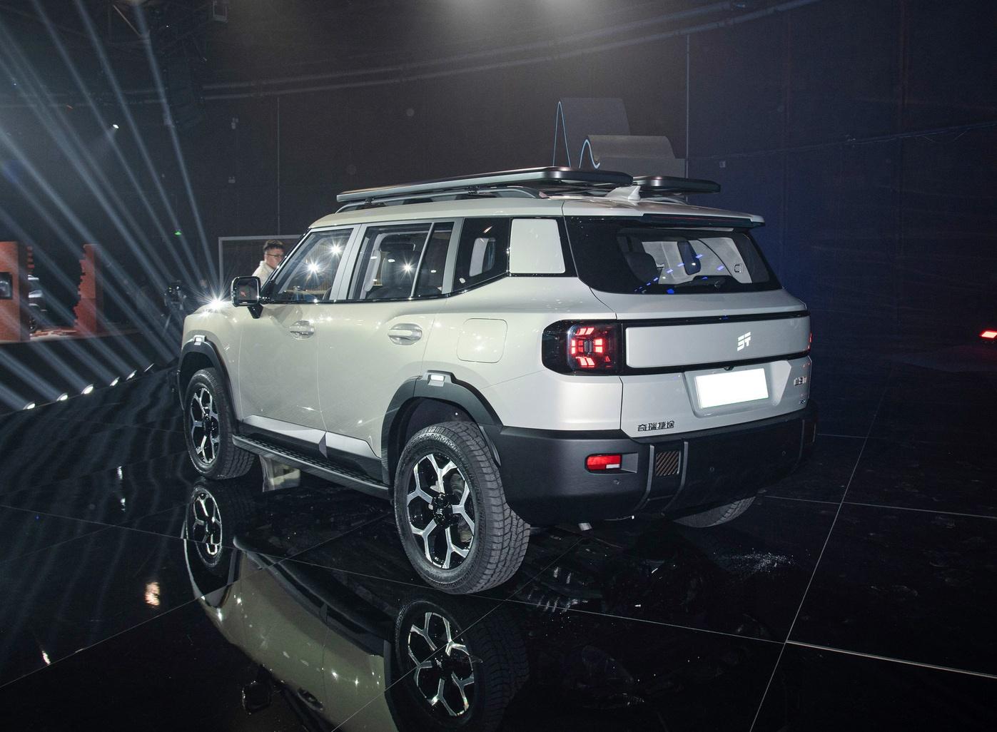 車尾部分為經典的SUV造型設計,車頂平直且突出的擾流板讓新車運動感很出眾,面積較小的擋風玻璃讓下方尾門突出明顯,兩側與前方大燈組相同的尾燈,中央有著平行的兩條黑色線條連接,形成了貫穿式的造型,車尾底部的大面積熏黑保險杠也是很厚重,大面積的造型也是彰顯了新車的運動定位。