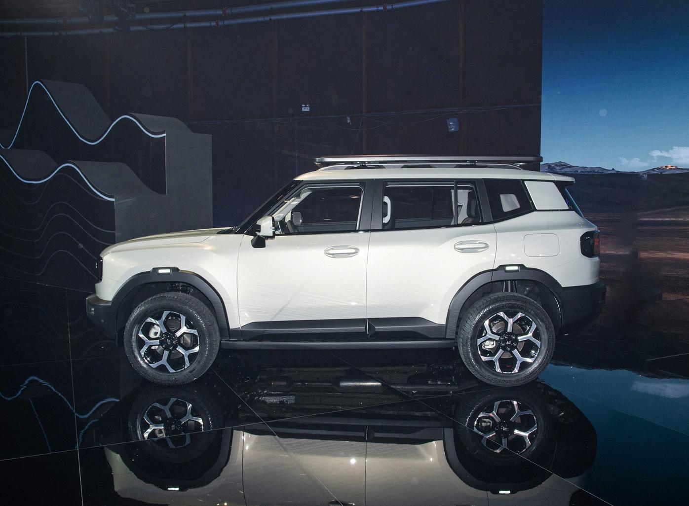 車身側面部分的造型則是很方正,平直的車頂有著微微下滑式的造型來提升運動感,并且結合上方的熏黑行李架設計,裝載能力也是不錯的,車窗部分因為熏黑的A柱設計,形成了懸浮式車頂看起來更加時尚,車門部分還有著從前方葉子板延伸至尾燈處的棱角腰線設計,讓新車看起來更加修長,并且車門底部的內凹式造型,以及寬厚的黑色飾板鑲嵌裝飾,提升了不錯的層次感,輪眉部分外擴的熏黑飾板,結合花瓣式的多幅式運動輪轂,讓新車運動感有著明顯提升。車身尺寸方面,新車的長寬高分別為4785/2006/1875毫米,軸距和山海T1同為2800毫米。出色的車身尺寸讓新車外觀看起來更加的硬朗。