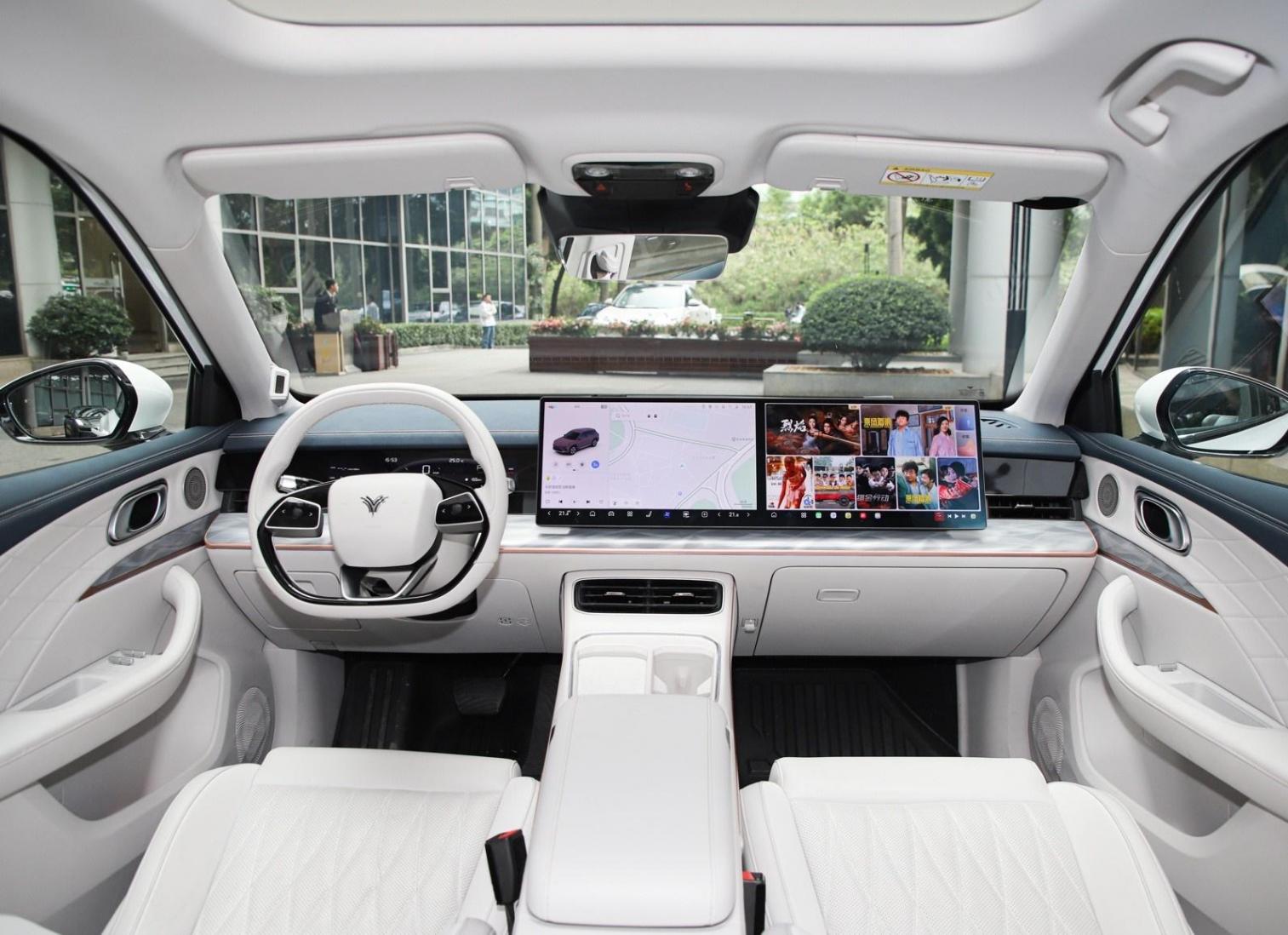 進入車內(nèi),內(nèi)部整體淺色系的設(shè)計看起來很有高級感,可以看到車內(nèi)配備有15.6英寸懸浮式中控屏,頂配車型還提供有副駕娛樂屏,整體造型與理想系列的車型很相似,而且內(nèi)嵌式的細長液晶儀表也是更加方便觀察行車信息,三幅式的平底式方向盤,結(jié)合懷擋式換擋機構(gòu),駕駛起來操作很方便,寬厚的柔軟座椅乘坐很舒適。