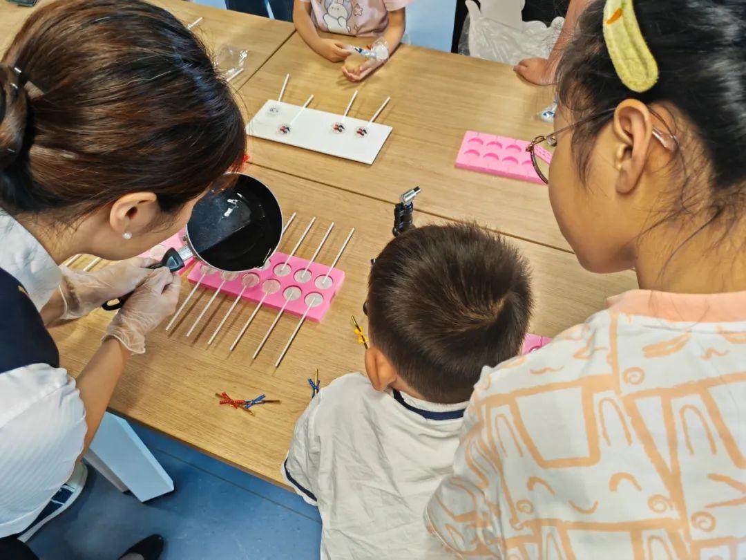 “這些棒棒糖好特別!”一支支棒棒糖,都做成了飛行員和乘務員的模樣,吸引了孩子們的目光。據悉,這是南航上海分公司青年員工創新開發的產品。在南航空乘姐姐的帶領下,孩子和家長們紛紛動手制作屬于自己的棒棒糖。將糖漿澆在模具中、貼上帶有航空元素的糖紙圖案……甜美的棒棒糖讓孩子們臉上洋溢開心的笑容。