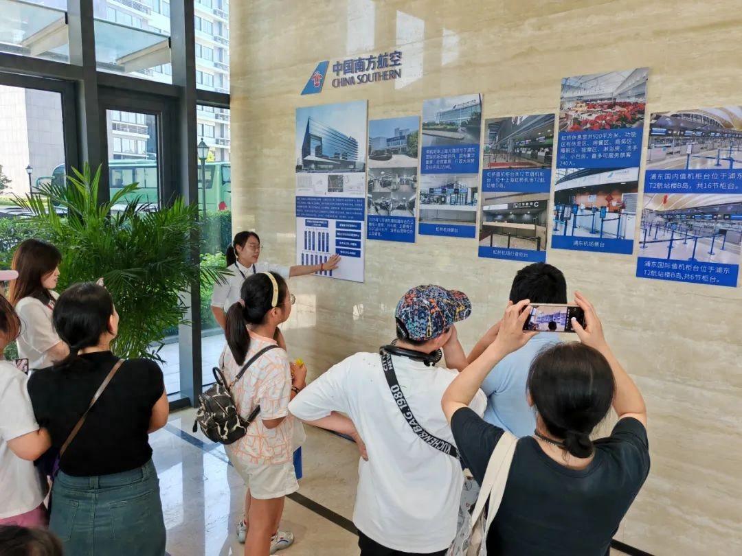 成立于2014年的南航上海分公司,是南航在長三角地區航空客貨運輸的重要樞紐。南航上海分公司團委副書記董思琪帶領孩子們走進上海南航大廈,介紹了南航上海分公司十年間的發展歷程。“在空港七路55號的虹橋東區貨站,也有我們南航的身影。” 董思琪告訴孩子們。“哇,原來離我們這么近!”孩子們在參觀中逐漸了解民航的逐夢奮斗史。