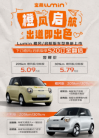 6月27日,長安Lumin推出了兩款新增車型,分別是橙風版和啟航版,售價5.09-5.79萬元。