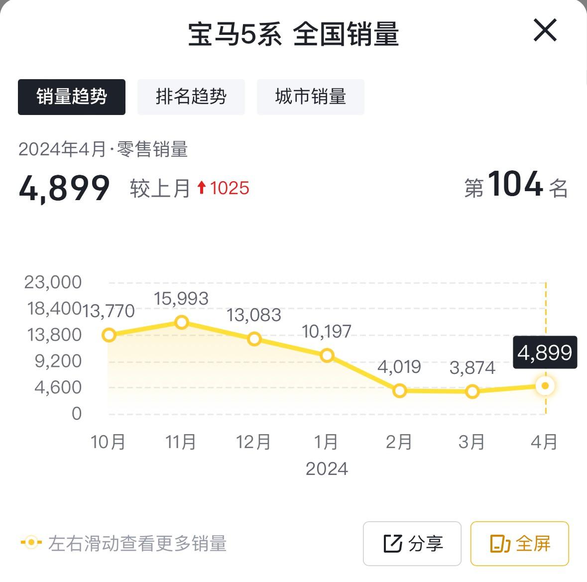 奔馳、奧迪等傳統豪華車的部分產品也面臨著新的挑戰。以寶馬為例,今年年初推出的全新一代寶馬5系自上市以來,銷量連續下滑。