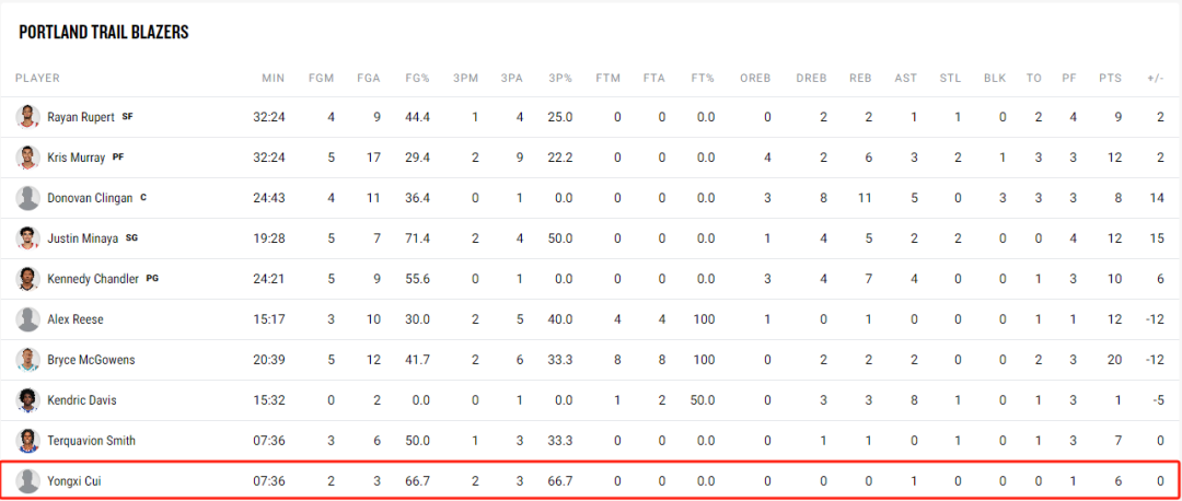 雖然遺憾未能在第二輪被選中,但這位懷揣夢想的年輕人選擇繼續留在美國訓練。此后,他與開拓者隊簽下Exhibit-10合同,隨隊征戰夏季聯賽,并在夏季聯賽結束后參加開拓者隊的季前訓練營。