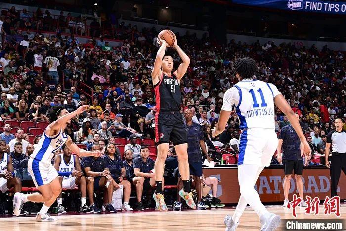 北京時間7月16日,2024-25賽季美職籃(NBA)拉斯維加斯夏季聯賽繼續進行。在波特蘭開拓者隊97:95戰勝費城76人隊的比賽中,中國球員崔永熙迎來夏季聯賽首秀。第一節末段替補登場的他,在第二節連續命中三分球并為隊友送出妙傳,全場貢獻6分1助攻。