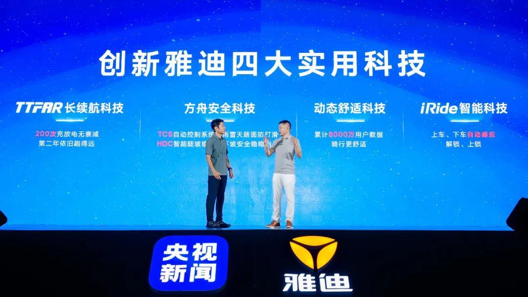 7月10日,雅迪再度聯動央視,舉辦了“雅迪實用科技全球發布會——新一代冠能系列上市”活動。此次活動在全球首發“四大實用科技”的同時,還推出了全面搭載雅迪實用科技的新一代冠能系列。