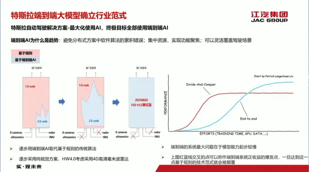 二則是傳統方案是規則加算法,端到端方案是全面AI化、模型化。
