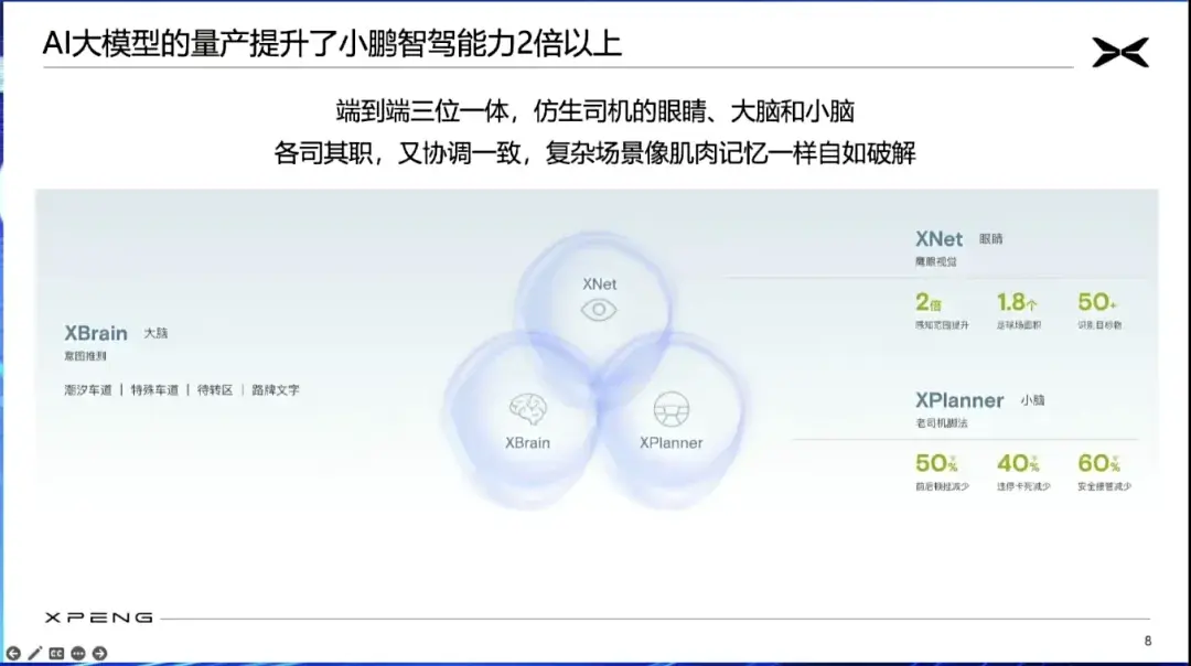 小鵬的大語言模型體現在其端到端方案中的XBrain模塊上面,對應去年在CVPR會議上痛陳的那幾個挑戰,它可以用于對動態物體的意圖判斷、對路牌文字、待轉區交通標識的識別。