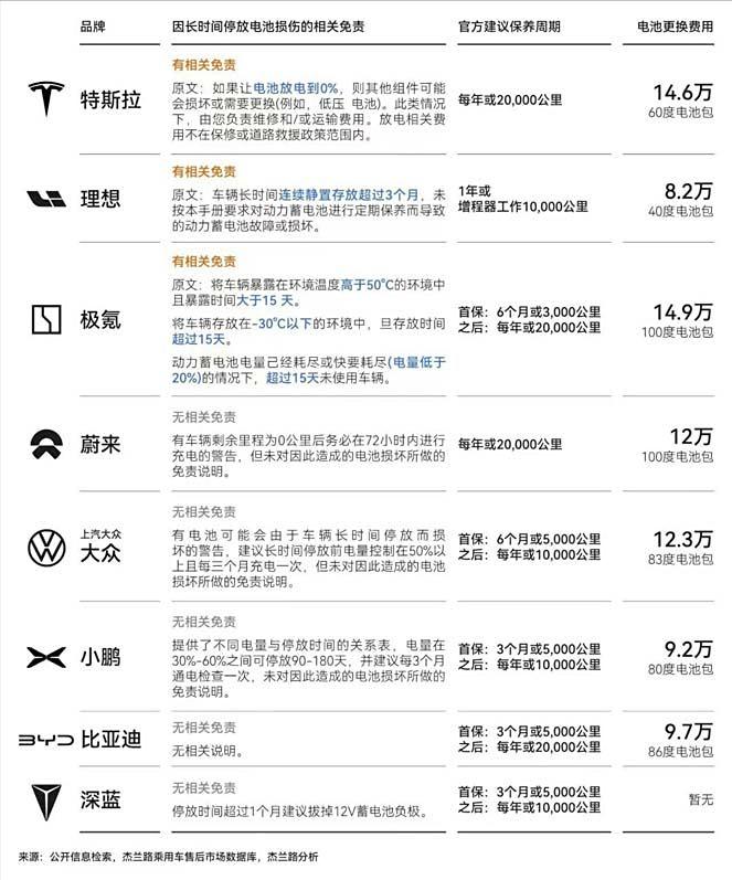 比亞迪作為國內(nèi)電動車領(lǐng)軍品牌,其86度電的電池組更換費用為9.7萬元人民幣。比亞迪建議車主在停用超過1個月時定期為12V電池進行充放電維護,但并未說明具體免責(zé)條款。