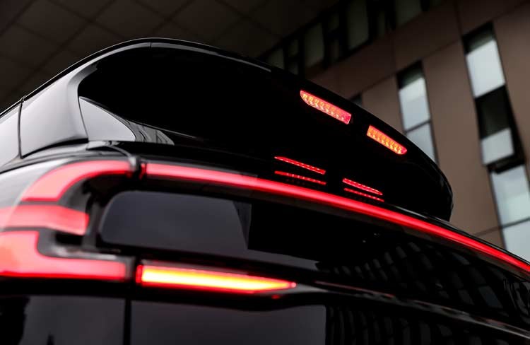 車尾采用貫穿式尾燈組,并在兩側進行了分層設計,保證了不錯的視覺效果。另外,尾部中央的LOGO采用啞光材質,整體看上去較為協調。值得一提的是,官方稱在新車的高位剎車燈中央處配有攝像頭,國內媒體們猜測這里或為車內流媒體后視鏡。