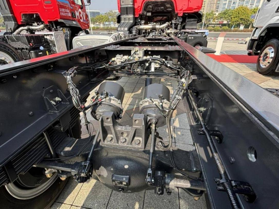 為了保障穩(wěn)定的動力輸出,車輛采用法士特12擋自卸車專用變速箱,該款變速箱根據(jù)自卸車的工況場景將速比優(yōu)化至5.921,強化了車輛在重載下的爬坡起步能力,極限工況下仍然輕松應對。
