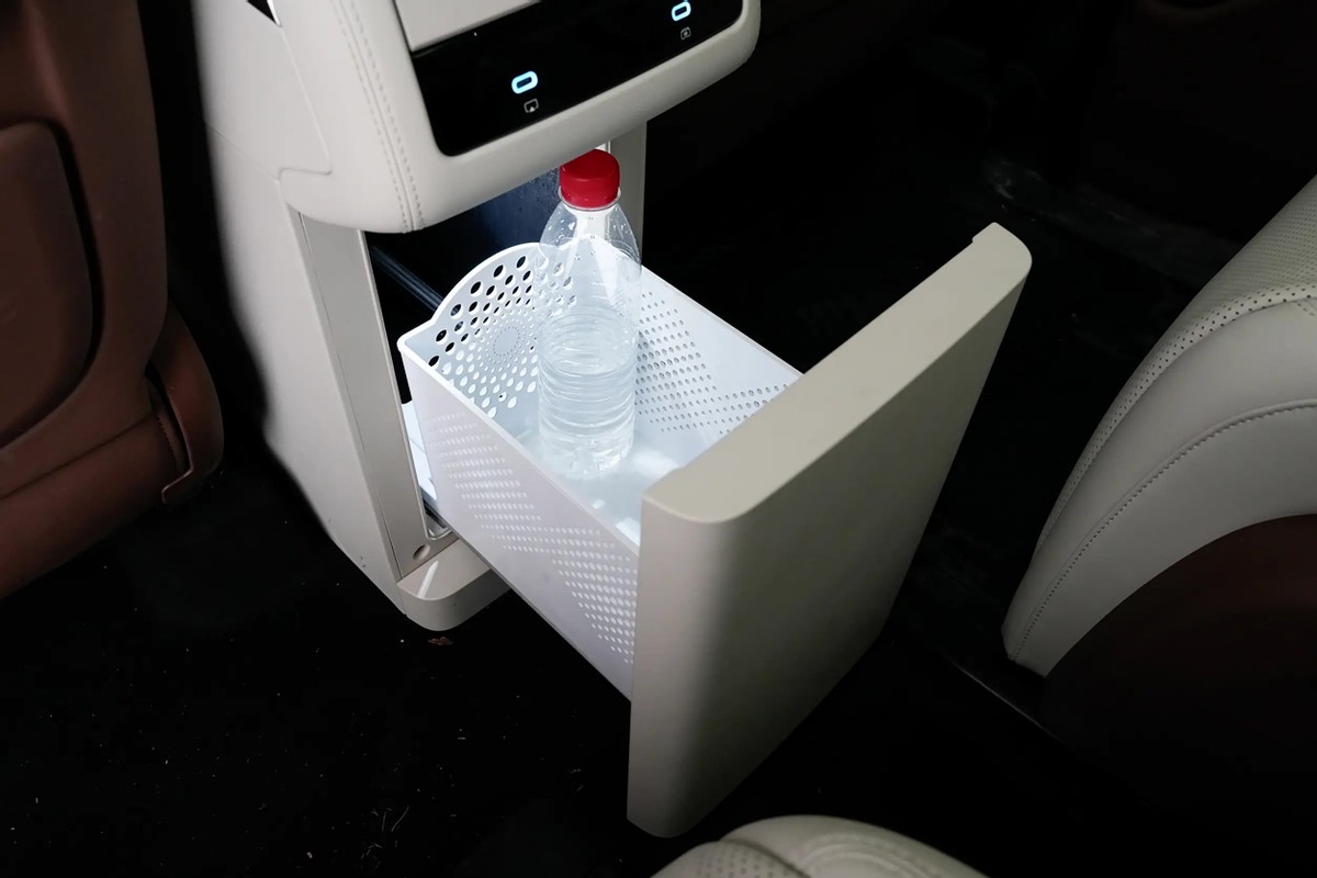 舒適配置來看,排除大概率作為拉低定價門檻,后續并不排產的低配領先型,另外三款車型配置都不低。如三款車型起步即配備四座加熱/通風/電動調節、主駕駛位座椅按摩、中排電動腿托/小桌板、后排電動調節、車載冰箱、后排獨立空調等配置。到了高配,新車還將升級中排座椅按摩、128色氛圍燈、方向盤加熱等舒適配置。
