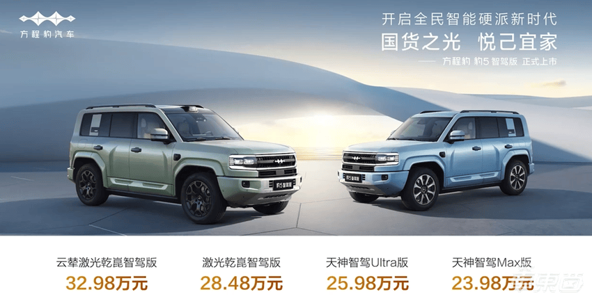 豹5智駕版此次共發(fā)布了4個(gè)版本,包括天神智駕Max版、天神智駕Ultra版、激光乾崑智駕版、云輦激光乾崑智駕版,價(jià)格區(qū)間為23.98萬元至32.98萬元。