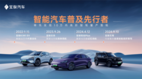 2024年4月,寶駿悅也Plus上市,又一次創造行業先河,成為全球首款搭載城市記憶領航輔助功能的車型,同時還將高快領航功能下放至10萬元級別。同年9月,寶駿云海上市并全系標配高階智駕,實現端到端模型在10萬元級車型的首次量產落地,真正做到了將高階智駕技術普惠大眾。