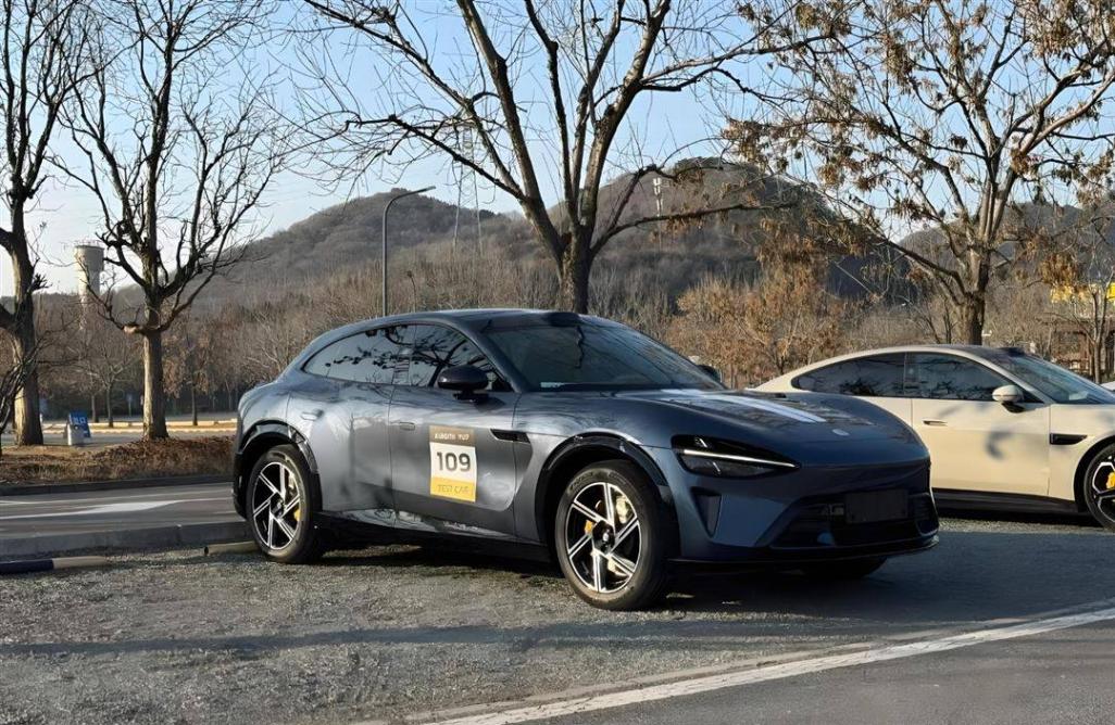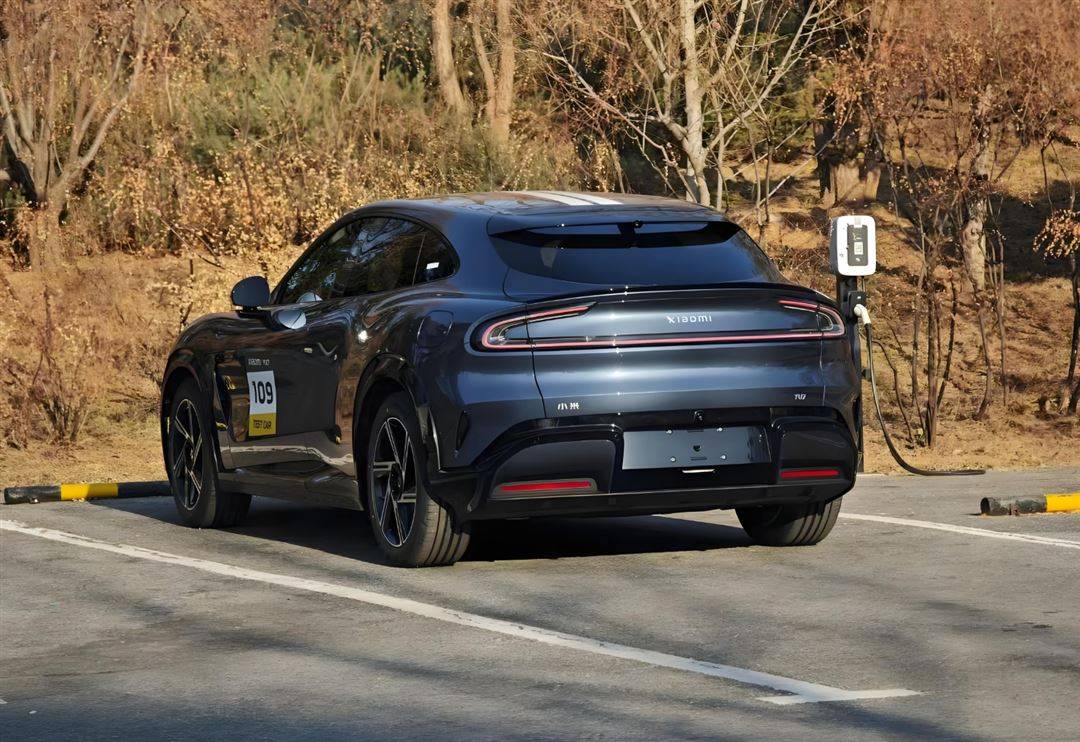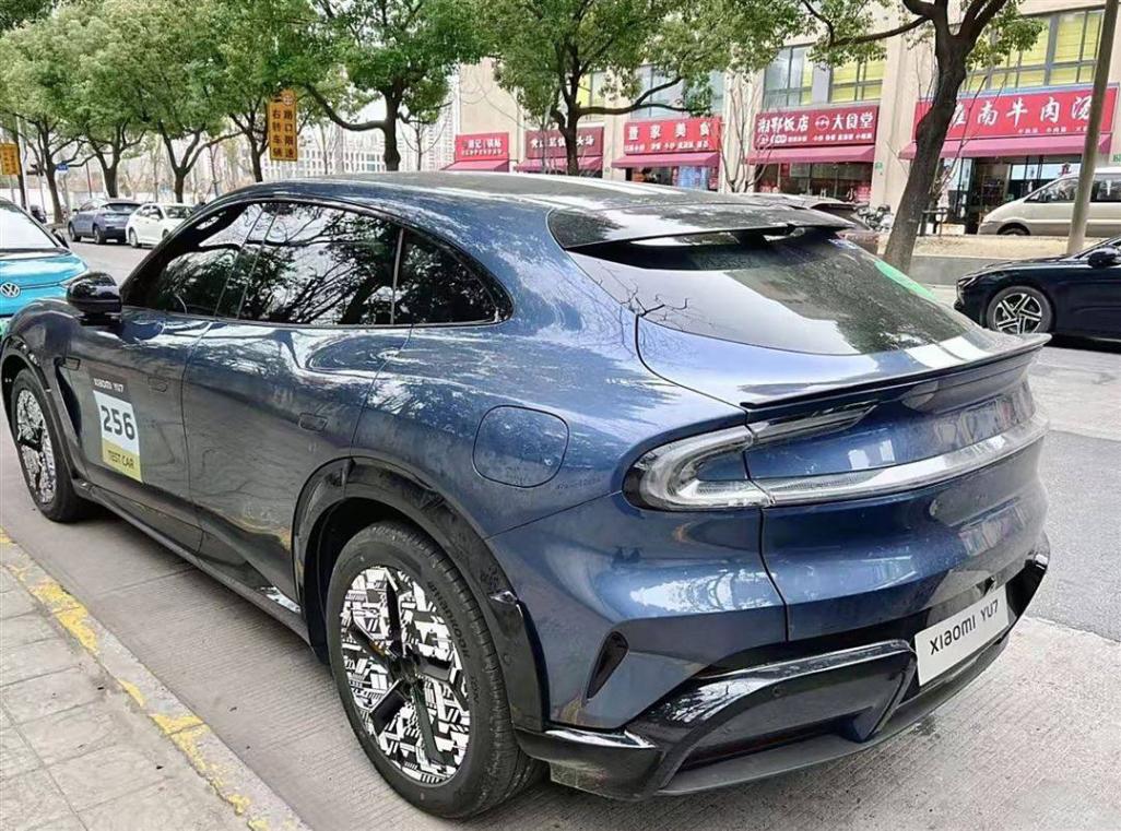 側面的門把手造型也會SU7有些不同,SU7用的是半隱藏,類似于保時捷Taycan,而YU7的路試車上出現的是全隱藏式門把手,翼子板的位置也開了導風口,值得一提的是路試車用的是韓泰輪胎。車尾也和SU7有一定差異化,雙U型的尾燈樣式,配合上頂部醒目的鴨尾擾流板辨識度還挺高的,后包圍造型看起來挺夸張的,也留了擴散器造型。