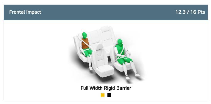 成人乘員保護在側面碰撞、柱碰以及遠端碰撞測試環節中均得到最高分,得分率為87%。