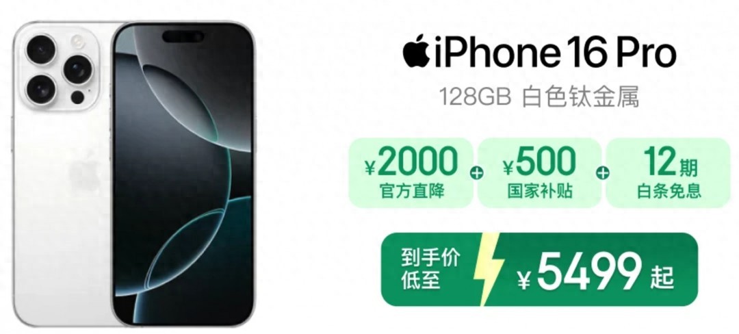 5月11日消息,在蘋果渠道官方降價后,iPhone 16 Pro疊加“國補”后到手價降到5499元起。