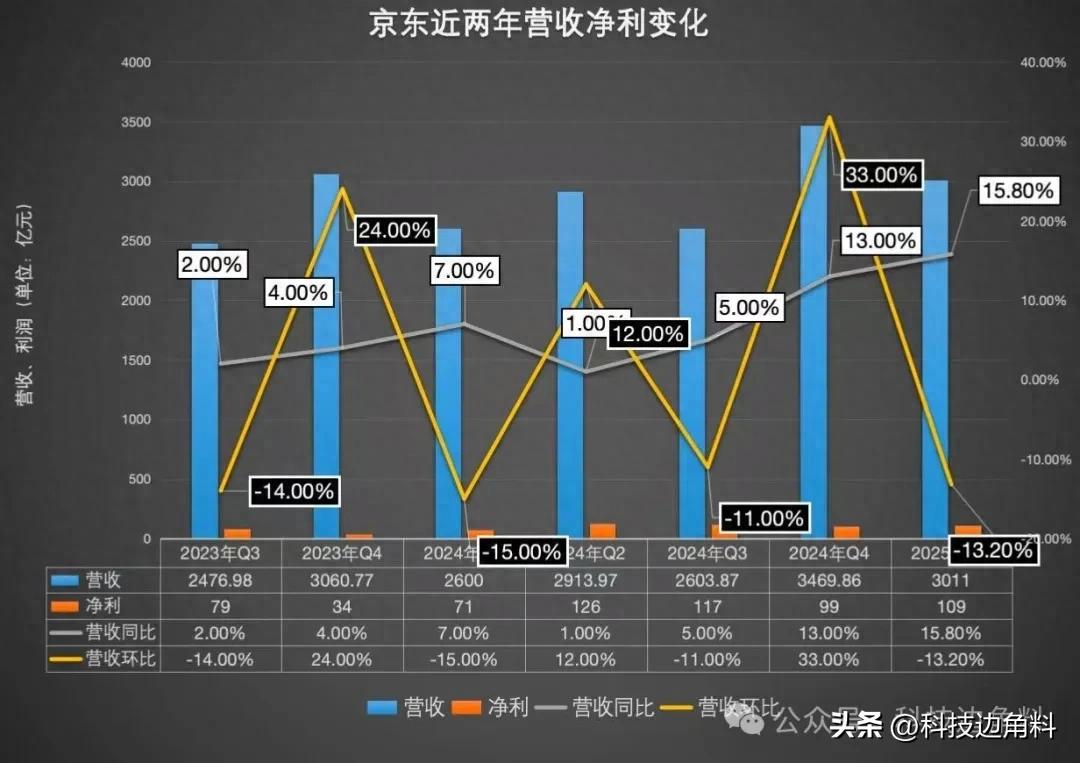 5月13日晚,京東披露2025年Q1財報,顯示多項數據超出市場預期,包括營收和利潤均保持雙位數增長,收入達3011億元,同比增長15.8%,創近三年來單季度最高同比增速,超出同期大盤增速3.4倍。此外歸屬于京東普通股股東的凈利潤達109億元,較上年同期的71億元增長53.5%。